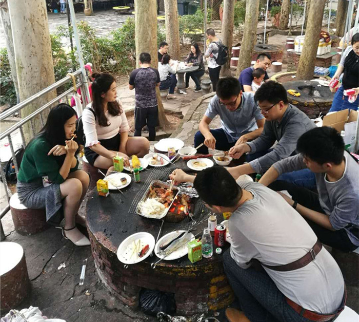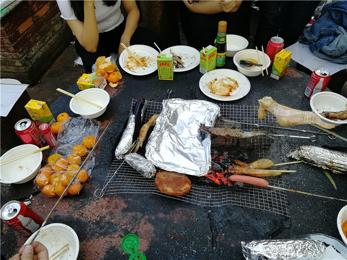 男同事負(fù)責(zé)烤,女同事負(fù)責(zé)吃,分工十分完美