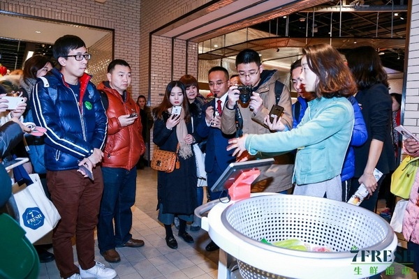 在試營(yíng)業(yè)6天后,2018年1月4日,京東打造的首家線下生鮮超市——7FRESH在北京亦莊大族廣場(chǎng)店正式開業(yè)。依托京東、京東生鮮的平臺(tái)資源,消費(fèi)者可在7FRESH親手挑選來(lái)自全球各地的新鮮食材。據(jù)介紹,在試營(yíng)業(yè)期間,日均單店單日客流量達(dá)一萬(wàn)人次以上;試營(yíng)業(yè)首日,7FRESH App注冊(cè)用戶數(shù)也呈現(xiàn)大幅上漲。