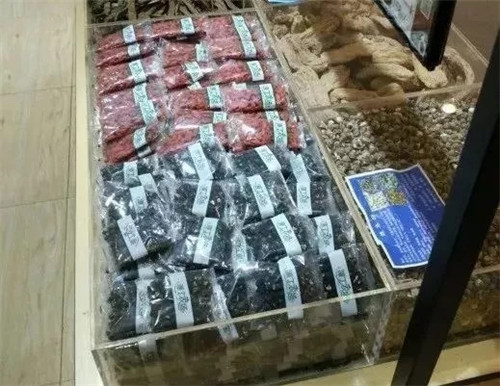 利用帶蓋的透明亞克力盒打造成半封閉式的展柜,陳列其中的滋補(bǔ)品盡顯高檔貴重,并且減少灰塵侵蝕,起到了隔絕保護(hù)的作用。