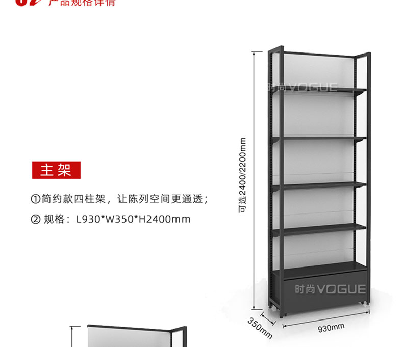 • 尺寸:L930*W350*H2200/2400mm