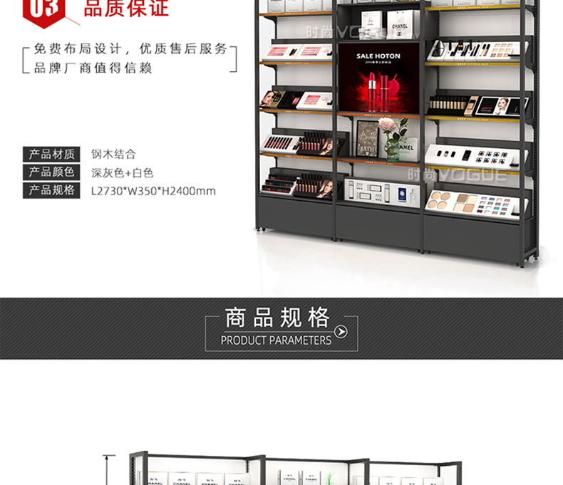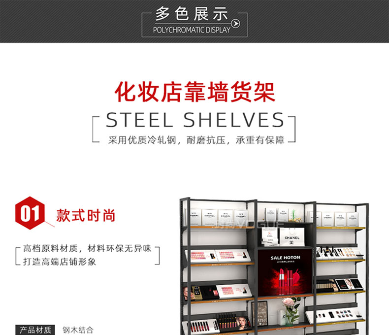 • 產(chǎn)品描述:【深圳時尚貨架】廠家直銷化妝品店靠墻貨架/化妝品單面貨架/鋼木結(jié)合靠墻背柜等,是專注于品牌店鋪服務(wù)的陳列道具供應(yīng)商。