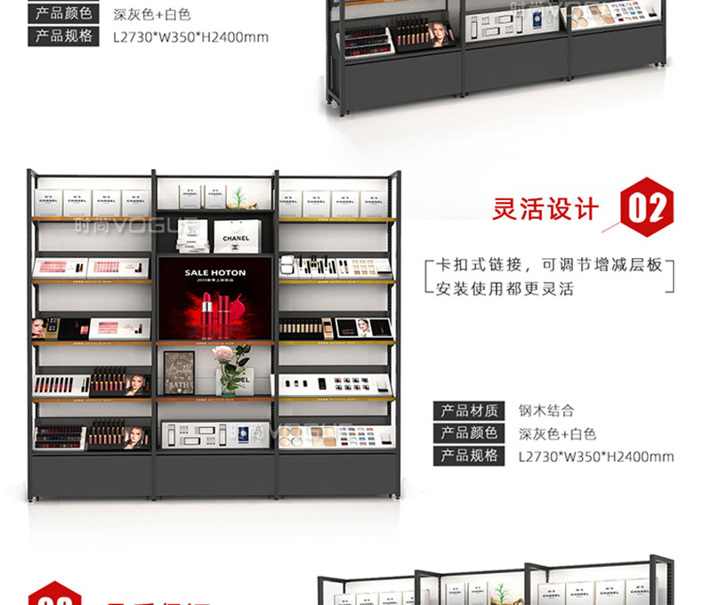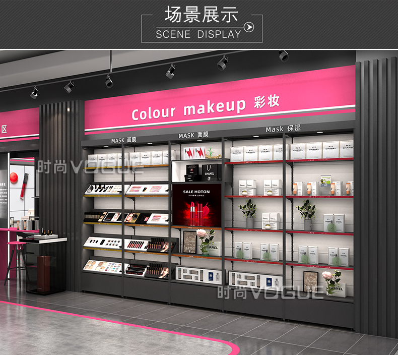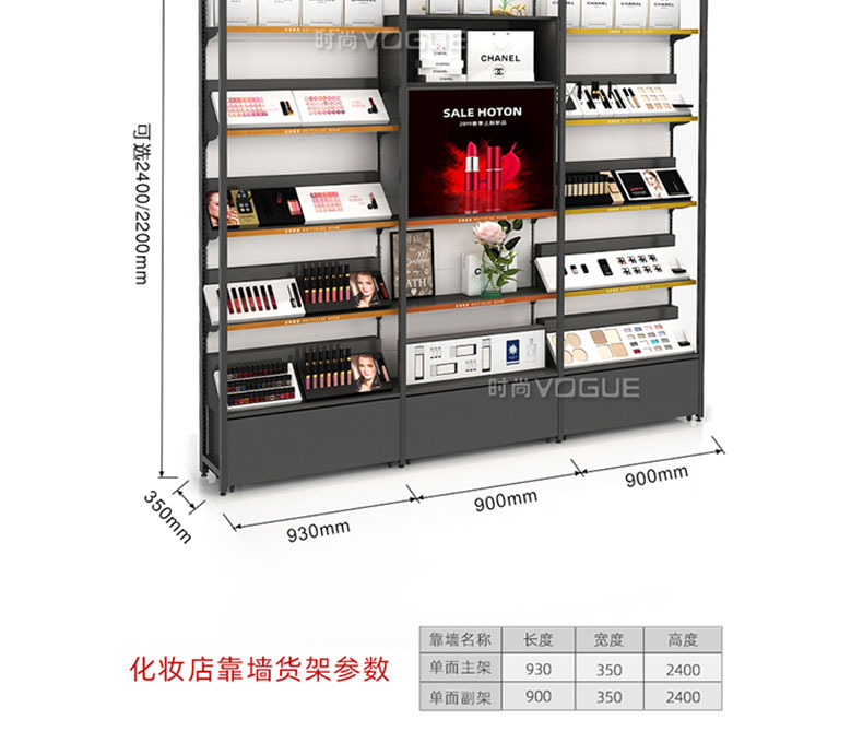 化妝品店貨架_靠墻當(dāng)面貨架