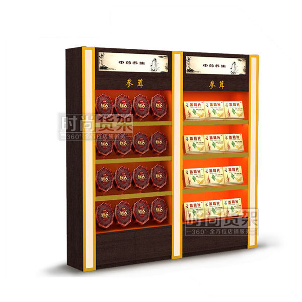 藥店貨架_參茸背柜(紅櫻桃木紋)