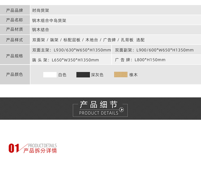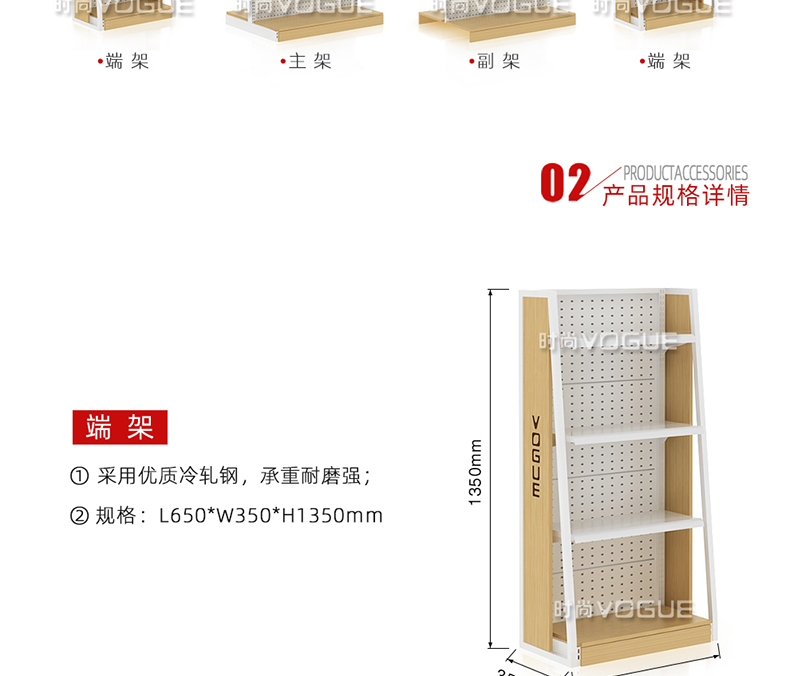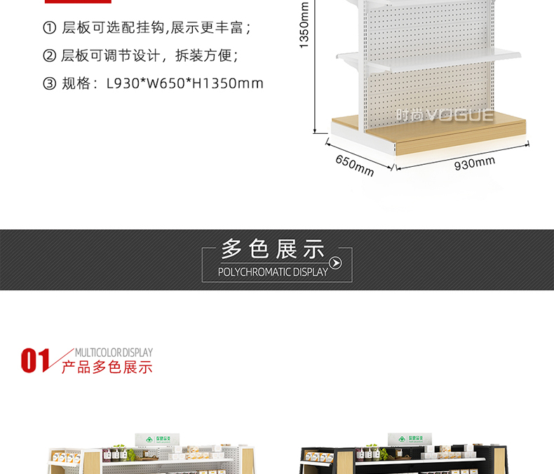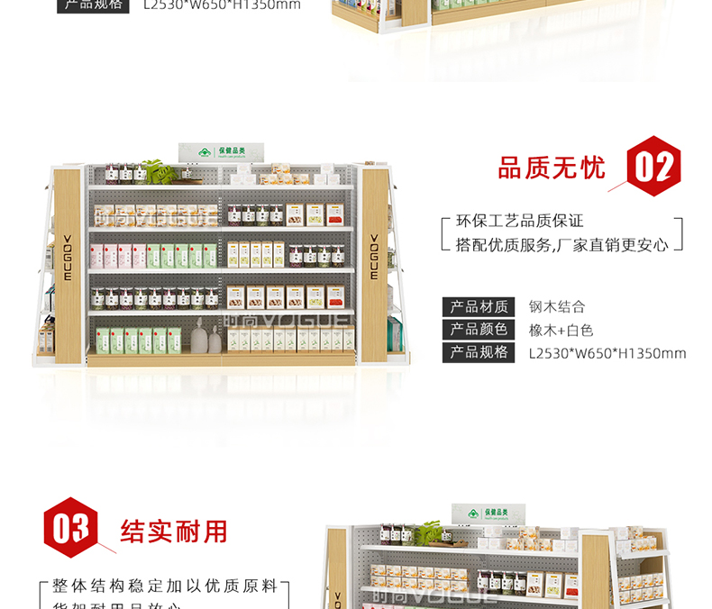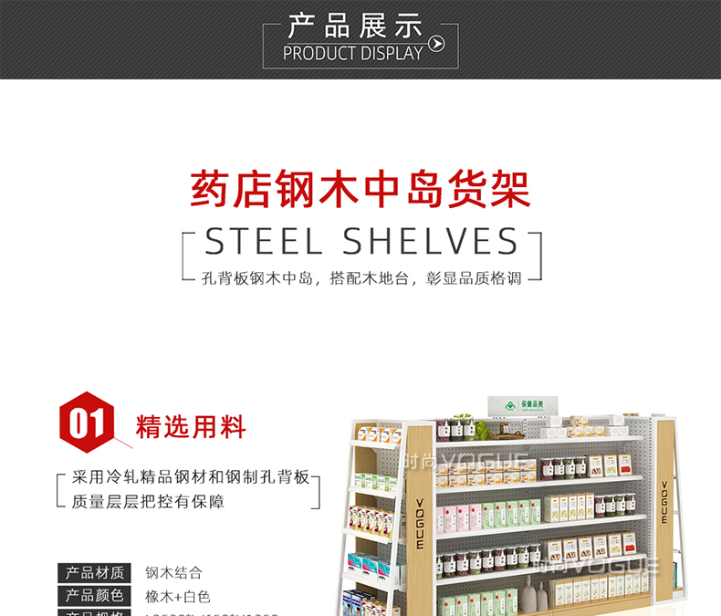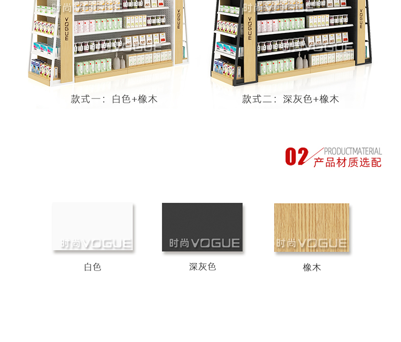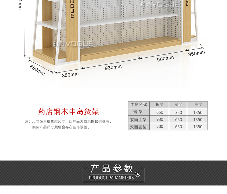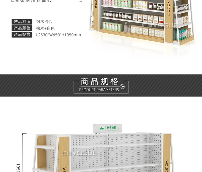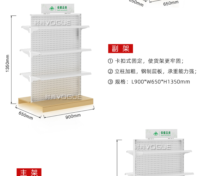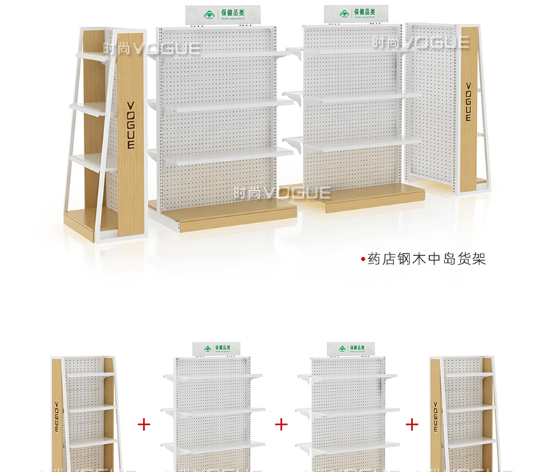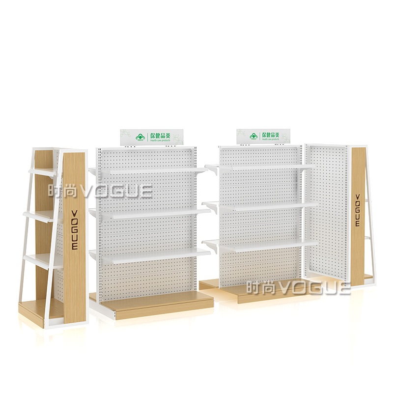 - 產(chǎn)品描述:深圳市時(shí)尚商貿(mào)有限公司為社區(qū)藥店設(shè)計(jì)了一款經(jīng)濟(jì)型的開(kāi)放式西藥貨架,以下詳細(xì)介紹了藥店非處方貨架的尺寸、結(jié)構(gòu)和陳列效果。
