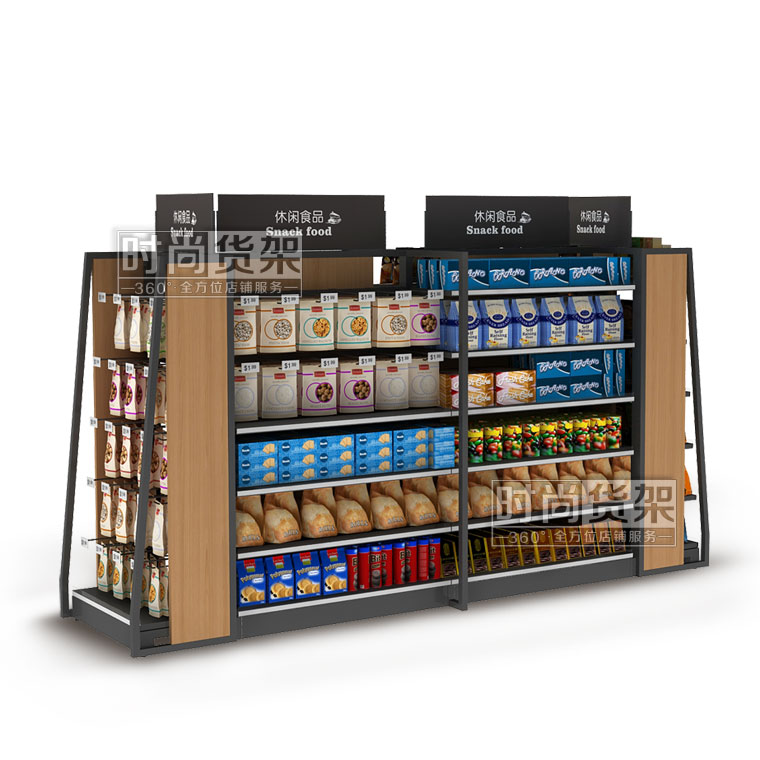 - 產(chǎn)品描述:本款產(chǎn)品是時(shí)尚貨架為店鋪食品區(qū)設(shè)計(jì)生產(chǎn)的一款鋼木結(jié)構(gòu)的便利店貨架。