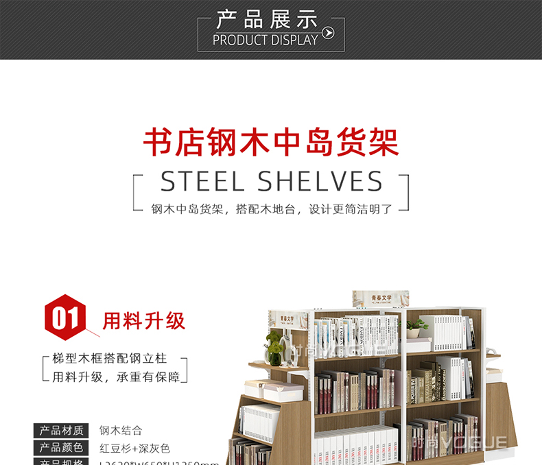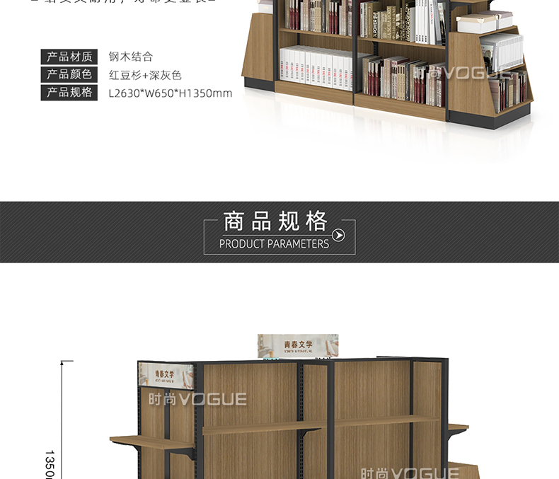 • 產(chǎn)品描述:這是時尚貨架專為書店圖書陳列打造的一款圖書店書架。